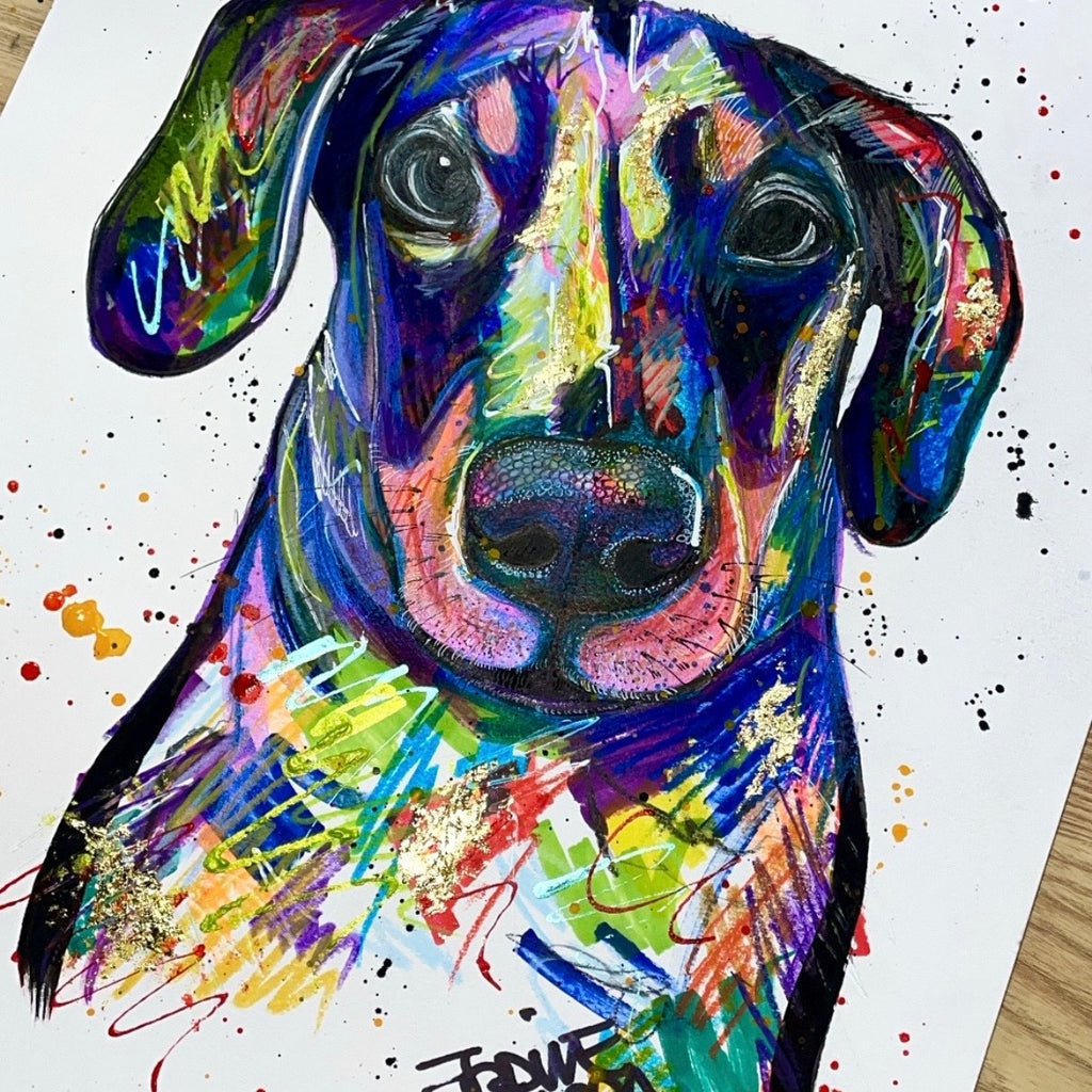 Once purchased, please send me a message or email with a clear, close up photograph of the dog you would like painted. A good angle of the eyes and nose makes for a great painting.